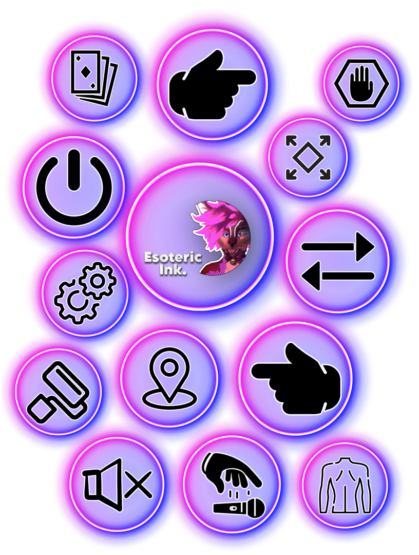6.7 Search Optimization Index means, for discoverability and cataloging purposes only, the inclusion of descriptive phrases reasonably associated with the Asset and its use in social VR and creator marketplaces, including, without limitation: VRChat asset, VRC avatar asset, Unity package, Unity prefab, FBX model, Blender-ready, Poiyomi shader, toon shader, emissive, dissolve effect, particle VFX, SFX, gesture animations, expression menu, radial menu, menu icons, animator controller, FX layer, Action layer, parameter driver, contact receiver/sender, VRCFury compatible, PhysBones setup, full-body tracking (FBT), topology, optimized topology, PCVR, performance rank: good/medium, modular system, plug-and-play, drag-and-drop prefab, installer, documentation included, unity tutorial, update support, commercial license available, non-redistribution terms, Gumroad store, Jinxxy listing, avatar accessories, prefab, effects, shader, world, state machine logic, cooldown timer, toggle on/off, matcap, stylized, realistic, game-ready, unity 2019/2022, download includes source, license terms, support contact, Esoteric INK.
