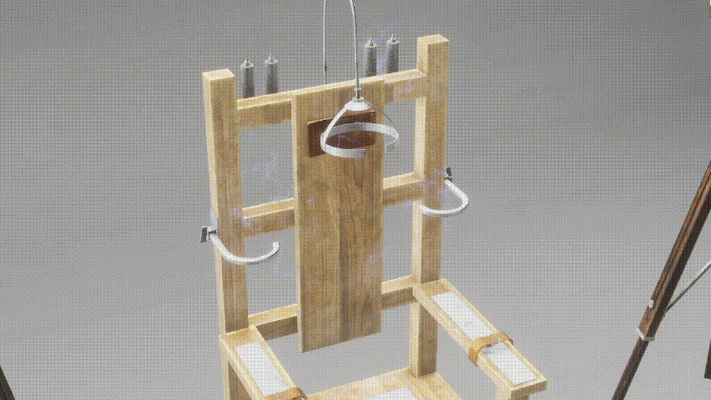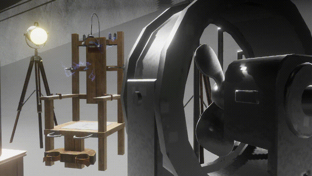 An asset which adds various implementations around the users avatar which can be spawned in and positioned together. The asset features starting and stopping controls, which stars and ends a sequence that plays audio and a video in front of the electric chair, which has a vrc station other players can sit it.